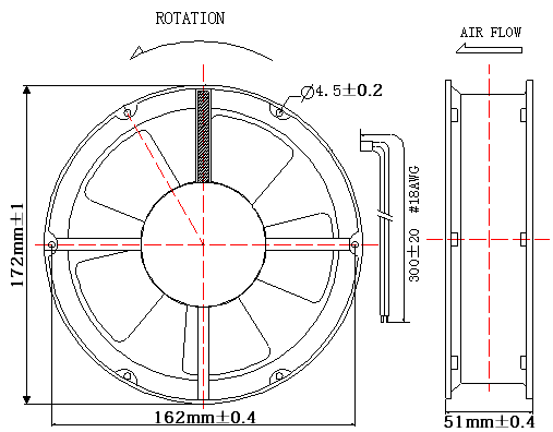 180-210CFM 172×172×51mm AC Axial Flow Fan |